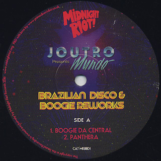 ブラジル/リオデジャネイロのDJ/プロデューサー、Joutro Mundoが手掛けるオブスキュアなブラジリアン・ブギー/ディスコ・エディットEPがYam Who?のレーベル【MIdnight Riot】から登場!鮮やかなシンセ、ホーン、女性Vo.がエッセンシャルに絡む合うミッドテンポのブラジリアン・ブギーA1「Boogie Da Central 」に始まり、メランコリックなムード漂うブラジリアン・ディスコA2「Panthera 」、スラップベースも絡めたタイトなファンク・ブギー・グルーヴに、エレピやSE/ホーンが絡む「 Cruisin’ 」、NWディスコ・ファンク的なテイストを感じさせる「Energia」の4トラックを収録!