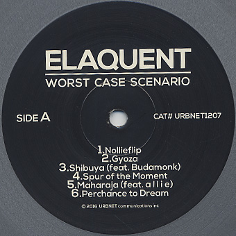 カナダはオンタリオを拠点に活動するビートメイカー、ElaquentのNewアルバム『Worst Case Scenario』!まずは、日本からBudamonkを迎え、幻想的なメロウビートを披露したA3「Shibuya」!女性シンガーa l l i eをfeat.したA5「Maharaja」、サックスを絡めたジャジーインストのB2「Caviar」、L.A.のシンガーソングライター、Iman Omariをfeat.したB5「Last Breath」等、メロウ〜ダウンビート〜チルなインスト曲を中心に収録!*グレーカラーヴァイナル