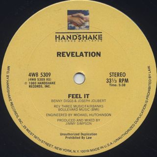フィラデルフィアのヴォーカルグループとして70年代中期から活動するRevelationの80年作。彼らの4th.アルバム『Feel It』からの12インチカットで、息の合ったコーラスワークも素晴らしいソウルフルなモダンダンサー!c/wには、Bill Evansのスタンダード曲にヴォーカルを乗せたバラード「When I Fall In Love」を収録。
