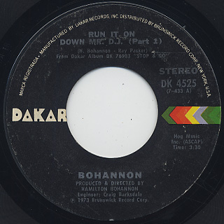 Bohannon / Run It On Down Mr. D.J.(Part 1) c/w Part 2 45