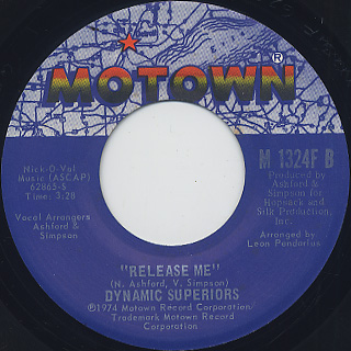 リードシンガーTony Washingtonを中心に、ワシントンDCで結成されたヴォーカルグループ、Dynamic Superiorsの74年作。プロデュースはAshford & Simpson。ファルセットと抜群のコーラスでじんわりとこみ上げるメロウソウル「Shoe Shoe Shine」に、オススメはこちらもAshford & Simpson節が◎のミディアムソウル「Release Me」!!