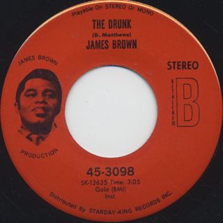 言わずと知れたファンクの帝王、James Brownの70年リリース作。SideAにはアルバム『Super Bad』からの熱いスロウソウル「A Man Has To Go Back To The Crossroads」を。SideBにはシングルオンリーのインスト・ファンクチューン「The Drunk」をカップリング!!