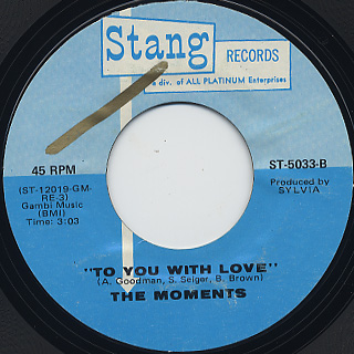 ニュージャージー、スウィート・ソウルの総本山【All Platinum】参加の【Stang】を代表するスーパースゥイートグループMoments70年にリリースしたアルバム「A Moment With The Moments」からのカット!