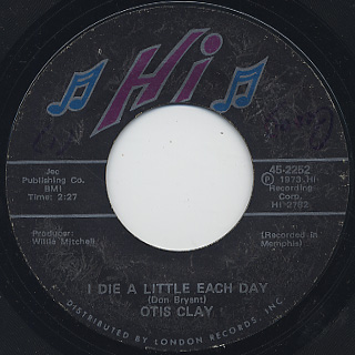 ミシシッピ出身、シカゴに移りキャリアをスタートさせた男性シンガーOtis Clay。彼が73年にリリースしたシングルオンリーの1枚。プロデュースはWillie Mictchellで、George Jackson作、名曲「Aretha, Sing One For Me」と同じメロディで沁みるナイスサザンソウルを披露!c/wには、Don Bryant作のミディアムスロウ「I Die A Little Each Day」を収録!