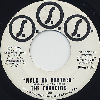 フィリー発のソウル/ファンク・グループThe Thoughtsが、フィリーのマイナーレーベル【S.O. Records】に唯一残した45オンリーの1枚。