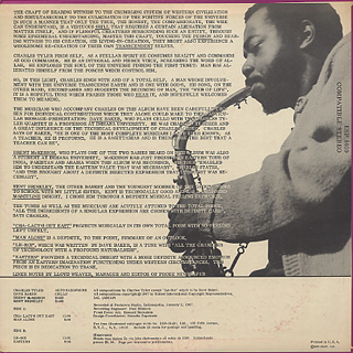 Sun RaやPharoah Sanders等も作品を残すN.Y.のアヴァンギャルド〜フリージャズレーベル【ESP Disk】から67年にリリースされたサックス奏者Charles Tylerのリーダー作。2本のベースにチェロとサックスと言う変わった編成で、モーダルな雰囲気を持ったA1「Cha-Lacy's Out East」などを披露!
