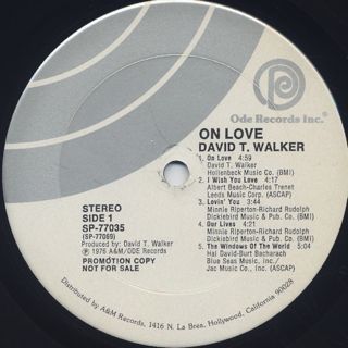 セッションミュージシャンとして、莫大な数のミュージシャンを支えた名ギタリスト、David T. Walkerの76年作。Chuck RaineyやJames Gadson、Bobbye Hallなどがバックで参加!ATCQやDe La Soulが使ったメロウなA1「On Love」に始まり、Minnie Ripertonの名曲カヴァーA3「Lovin' You」、Bust Rhymesや9th Wonderが使ったブリージンなギターとピアノが響くA5「The Windows Of The World」、Jerry PetersアレンジのフュージョンB3「Let Me In Your Life」などを収録!