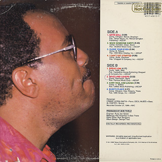 ヴァージニア州リッチモンド出身のピアノ / オルガン奏者、Lonnie Liston Smith。【Flying Dutchman】からのジャズ・ファンク〜フュージョン作品でもお馴染みの彼が86年にリリースしたピアノ・ジャズ・アルバム。Cecil McBee(B)とAl Foster(D)のトリオでの本作。洒落たA1「Satin Doll」、ファットグルーヴのベースが引っ張るスタンダード・カヴァーB1「Speak Low」、Bacharach & Hal Davisの名作B2「Wives And Lovers」、これまたCecil McBeeのベースが引っ張る骨太なフュージョンB2「Cary Paul And Louisa」等を収録!