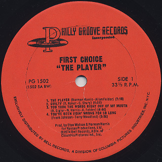 フィラデルフィアの3人娘、First Choiceが【Philly's Groove】より、74年にリリースした2nd.アルバム。プロデュースはStan WatsonとNorman Harris!録音はSigma Sound Studioと、生粋のフィリーサウンドを披露!シングルカットもされたフィリーダンサー名曲A1「The Player」を始め、ストリングスやホーンをゴージャスに配したA3「You Took The Words Right Out Of My Mouth」、DJ MuggsやYoung Guns等が使った壮大なソウルB2「All I Need Is Time」等を収録!鮮やかなジャケットもナイス!