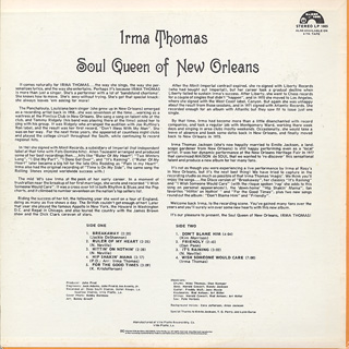 その名の通り、ニューオーリンズを代表する女性シンガー、Irma Thomas。彼女が78年にリリースした名作!Tracey Ullmanのカヴァーでも有名なポップチューンA1「Breakaway」や、タメの効いたドラムにベースが絡むド渋なブレイクから始まるA3「Hittin' On Nothin」等を収録!!