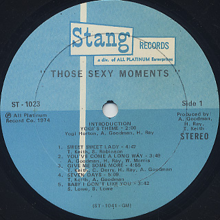 Lord FinesseやIce Cube等の楽曲でもサンプリングされている、ドラムブレイクから始まる人気曲B4「Sexy Mama」を筆頭に、グルーヴィーなスウィート・ダンサーA3「Give Me Some More」、Sylvia / Sweet Stuff路線、Karreim Rigginsも使っていたB5「Next Time I See You」等、アルバム通して素晴らしい!