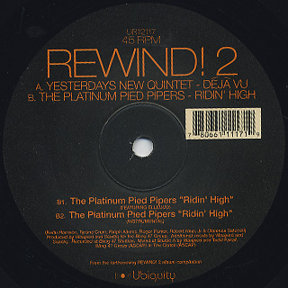 Ubiquityレーベルの名物コンピ『Rewind』シリーズの第2弾『Rewind 2』からの12"カットされた2002年の1枚。SidEAは、Yesterday's New QuintetことMadlibがWeldon Irvineの名曲をカヴァー!c/wには、P.P.P.によるFaze-Oのカヴァーのオリジナルver.を収録!